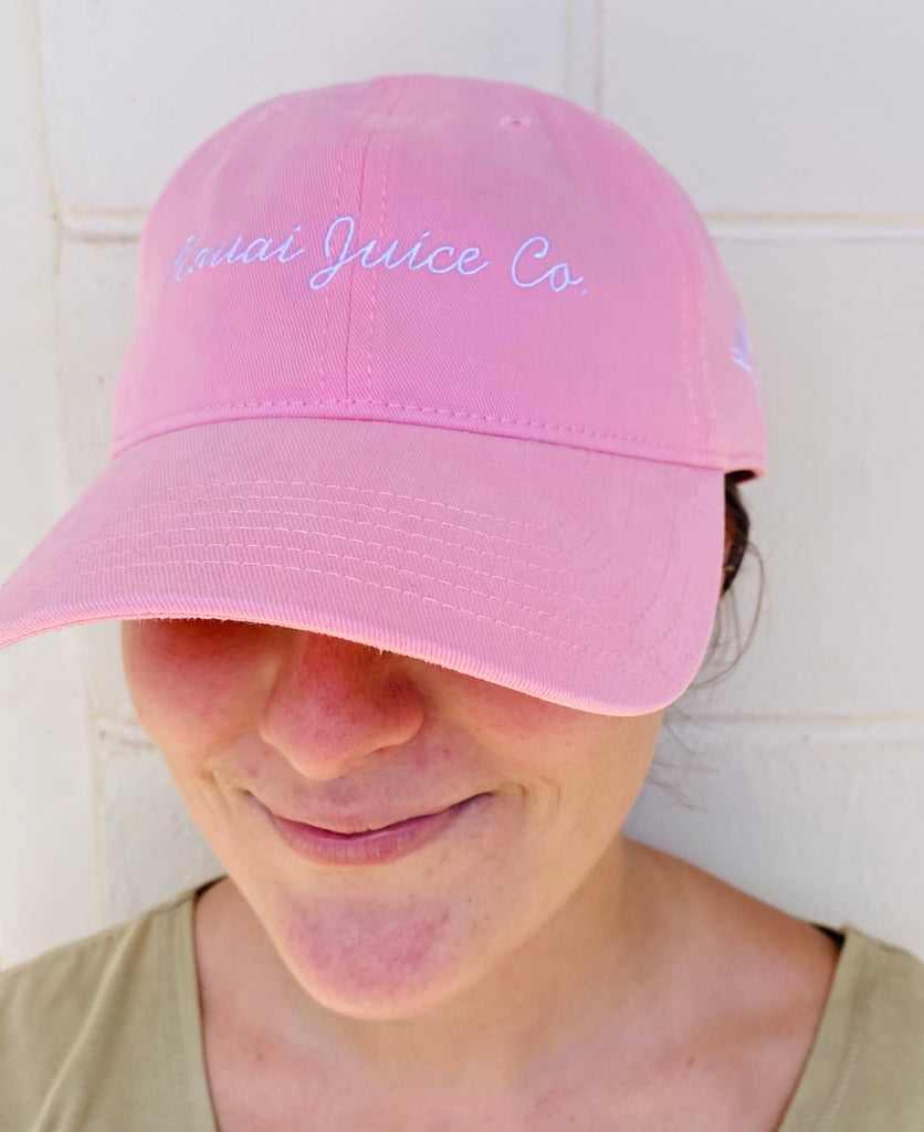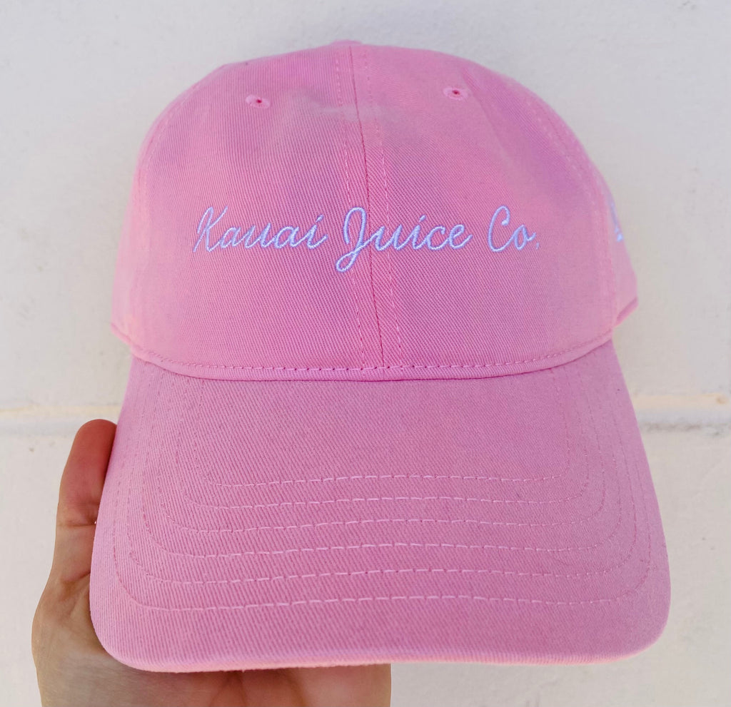 Baby Pink Cursive Kauai Juice Co with birds of paradise on side