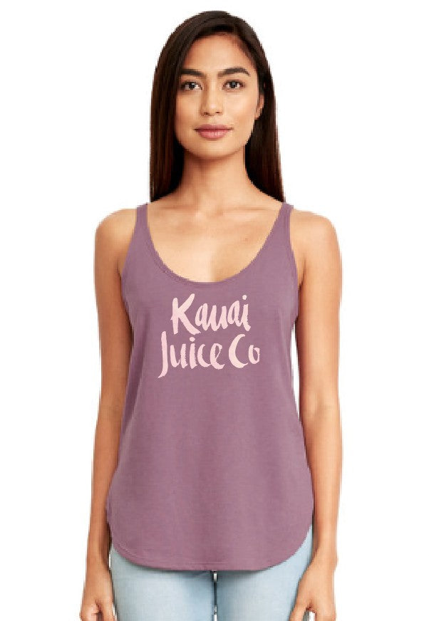 Mauve Next Level tank top with Kauai Juice Co. Brush Script font